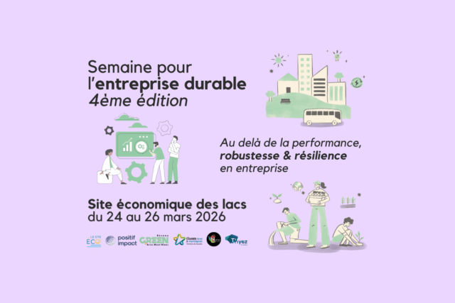 Du mardi 24 au jeudi 26 mars, la semaine pour l’entreprise durable débarque au Site économique des lacs pour sa 4èmé édition ! Coorganisée avec Positif Impact et le Réseau G.R.E.En, cet évènement est ouvert à tous les professionnels de la vallée de l’Arve qui souhaite s’engager, réfléchir et/ou se mettre en action pour baisser…